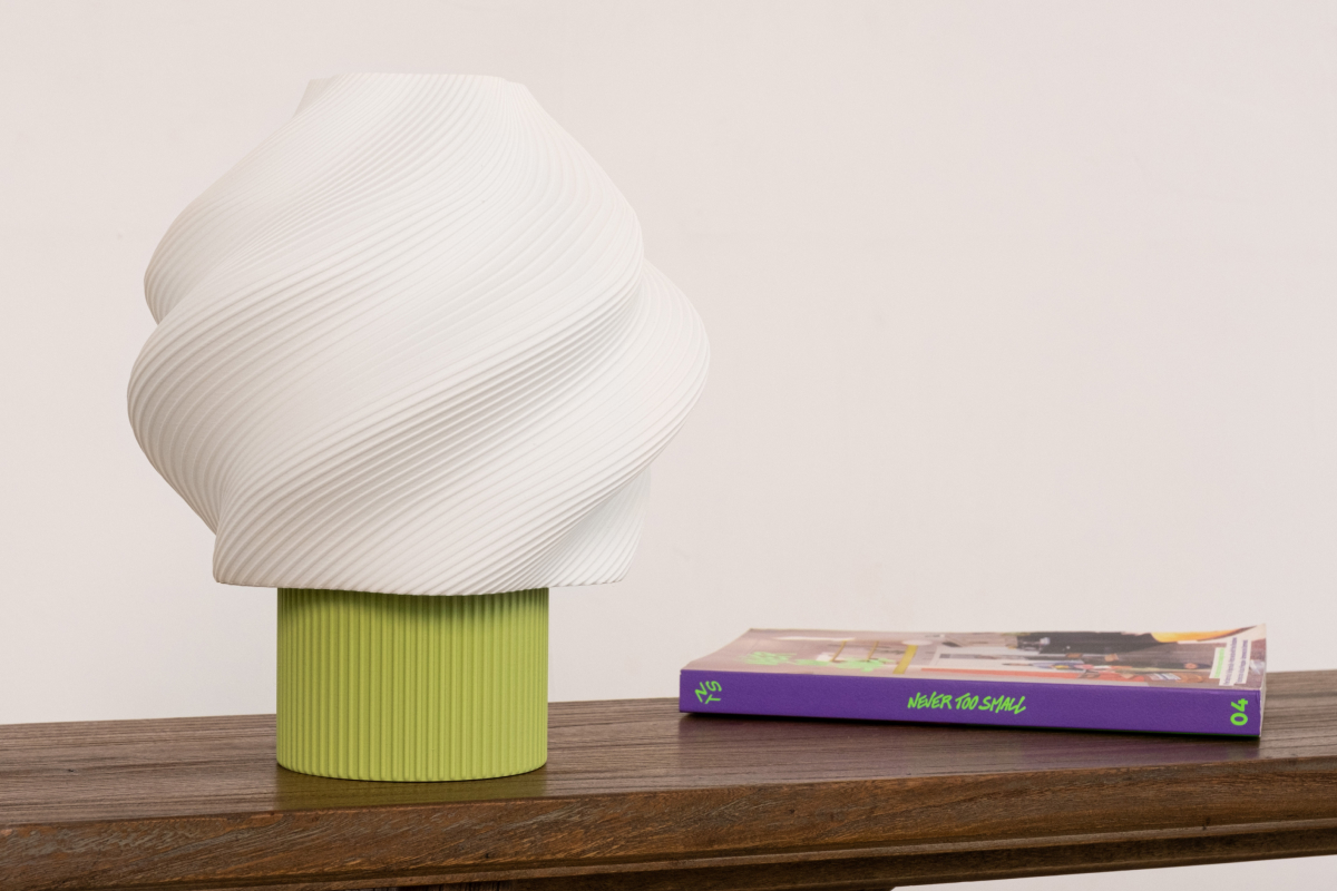 Светильник изготовлен в нашей 3D-лаборатории по дизайну Flowlastic Studio и производится по лицензии бренда KUMO. Основание и плафон отсоединяются и взаимозаменяемы с другими моделями серии.