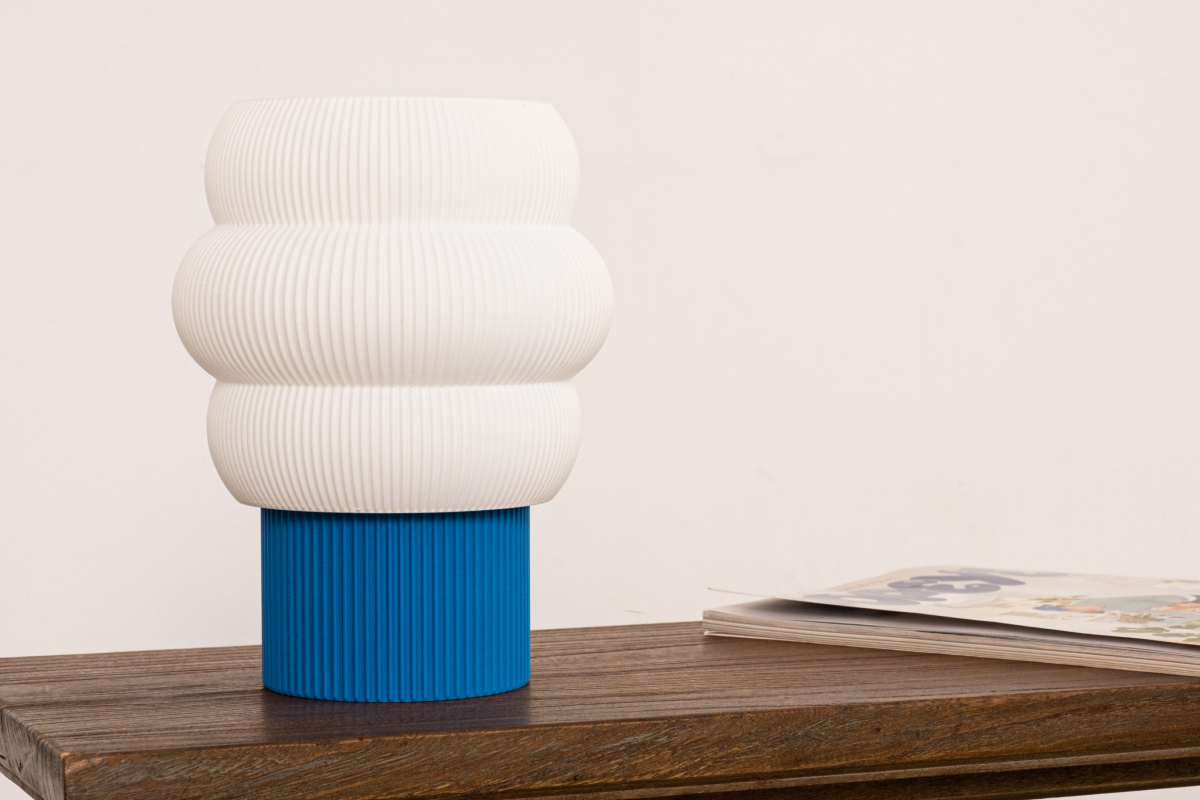 Светильник изготовлен в нашей 3D-лаборатории по дизайну Flowlastic Studio и производится по лицензии бренда KUMO. Основание и плафон отсоединяются и взаимозаменяемы с другими моделями серии.