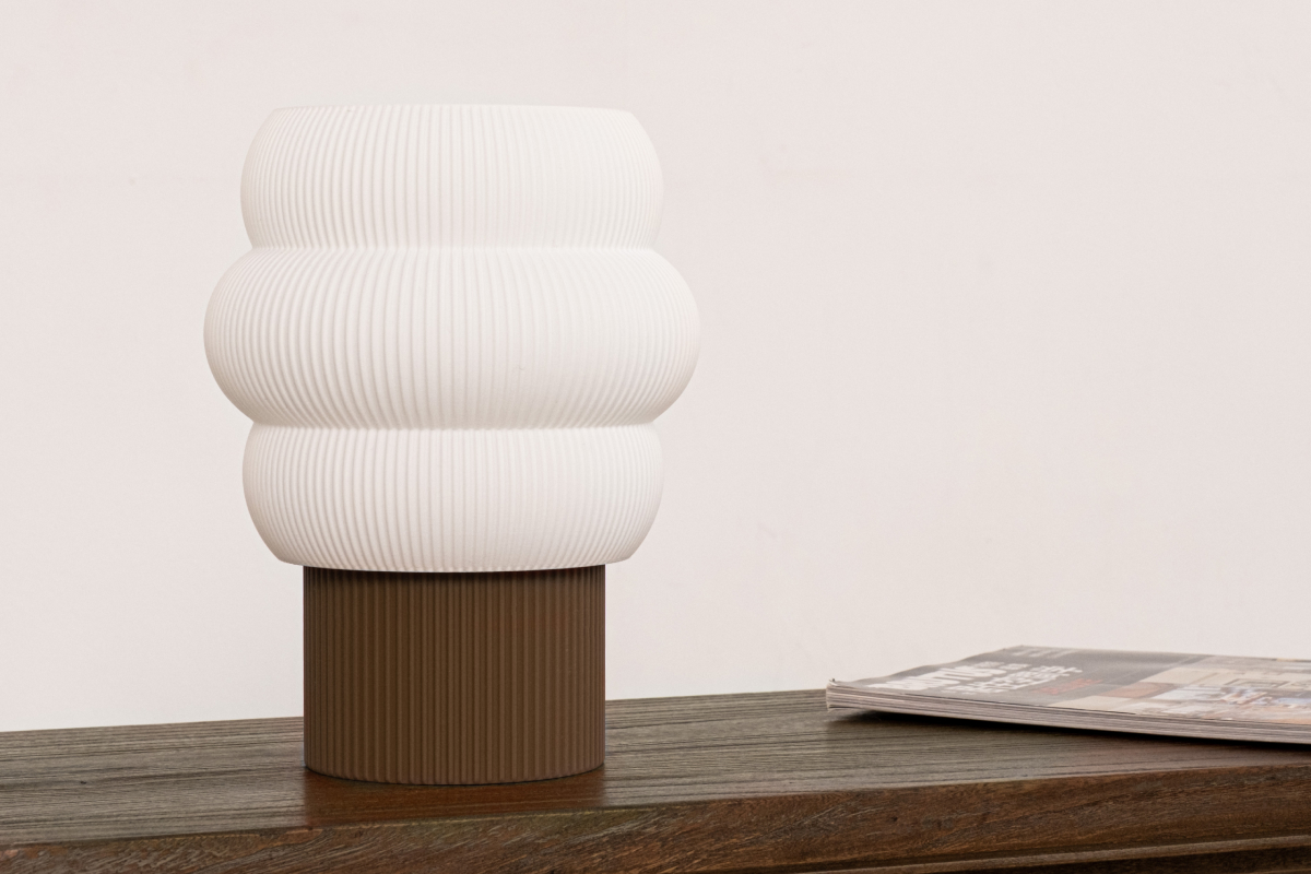 Светильник изготовлен в нашей 3D-лаборатории по дизайну Flowlastic Studio и производится по лицензии бренда KUMO. Основание и плафон отсоединяются и взаимозаменяемы с другими моделями серии.