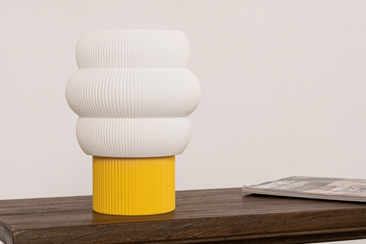 Светильник изготовлен в нашей 3D-лаборатории по дизайну Flowlastic Studio и производится по лицензии бренда KUMO. Основание и плафон отсоединяются и взаимозаменяемы с другими моделями серии.