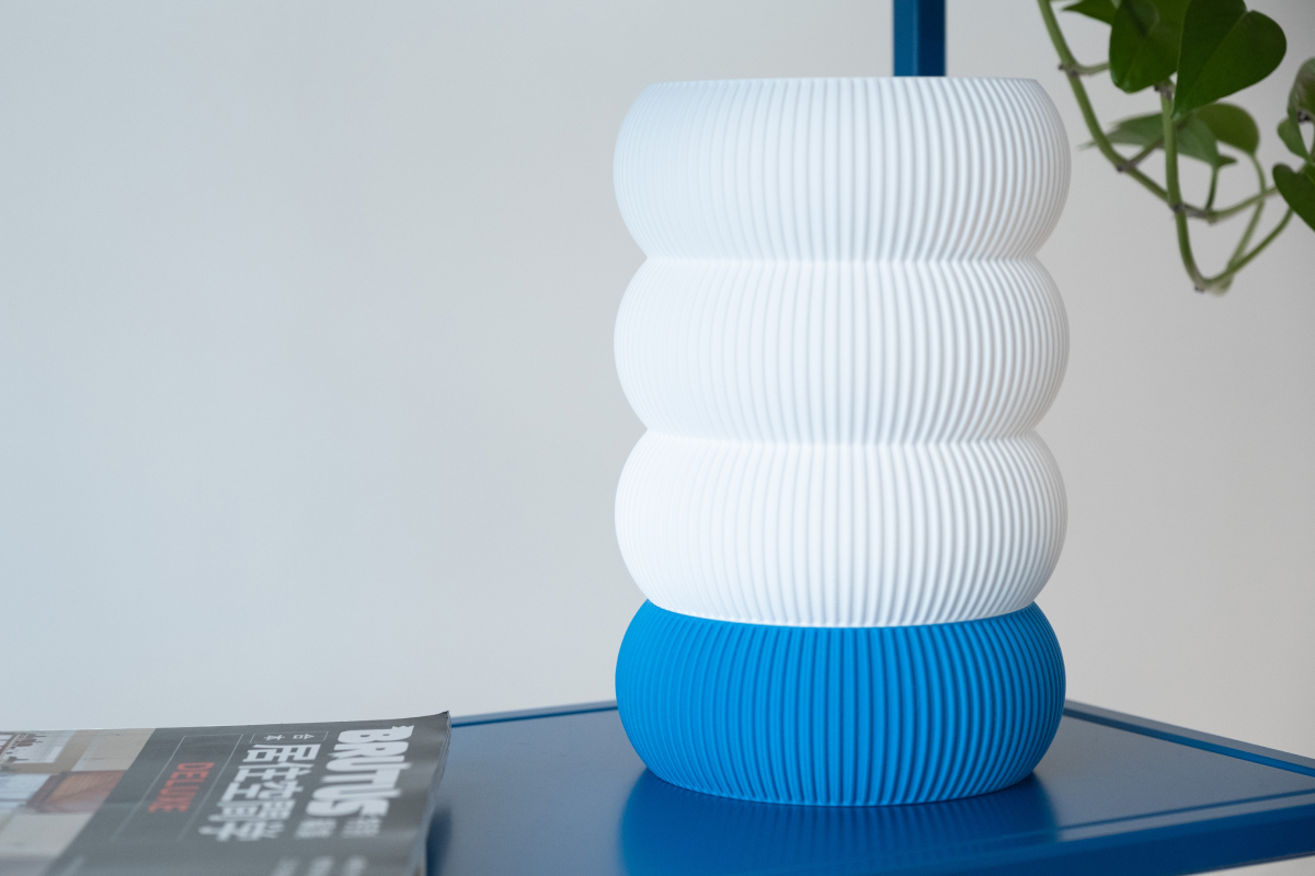 Светильник изготовлен в нашей 3D-лаборатории по дизайну Flowlastic Studio и производится по лицензии бренда KUMO. Основание и плафон отсоединяются и взаимозаменяемы с другими моделями серии.