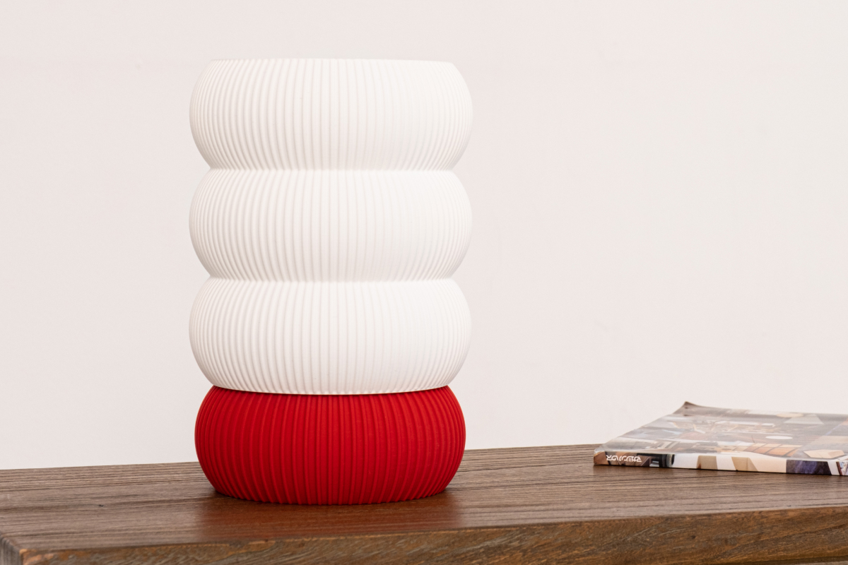 Модульный настольный светильник Totem из биоразлагаемого пластика. Выглядит сдержанно, но остаётся визуально интересным. Лампа не занимает много места и идеально впишется на стеллаже, прикроватной тумбе или рабочем столе.