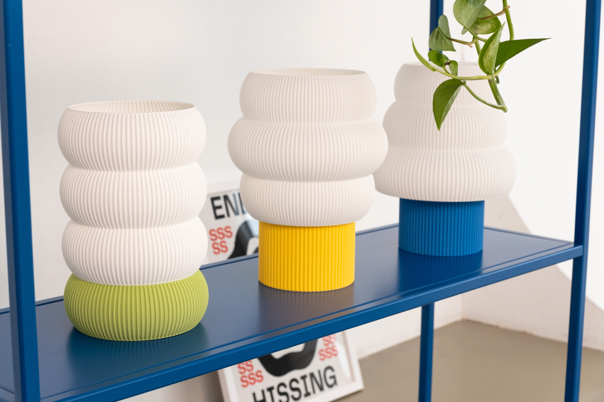 Модульный настольный светильник Tree из биоразлагаемого пластика. Мягкая, округлая форма делает его визуально тёплым и спокойным, а вертикальная текстура добавляет глубину без перегрузки. Светильник не занимает много места и легко вписывается в интерьер — на стеллаж, прикроватную тумбу или рабочий стол.