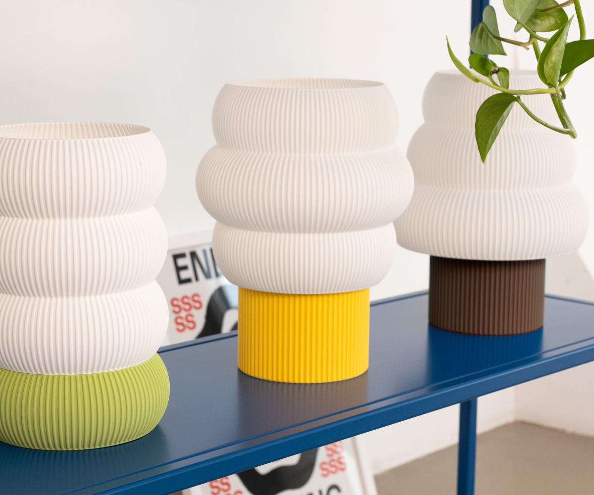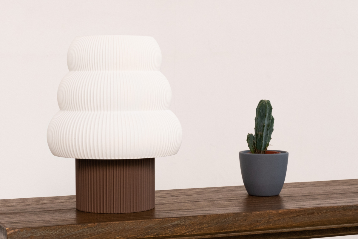 Модульный настольный светильник Tree из биоразлагаемого пластика. Мягкая, округлая форма делает его визуально тёплым и спокойным, а вертикальная текстура добавляет глубину без перегрузки. Светильник не занимает много места и легко вписывается в интерьер — на стеллаж, прикроватную тумбу или рабочий стол.
