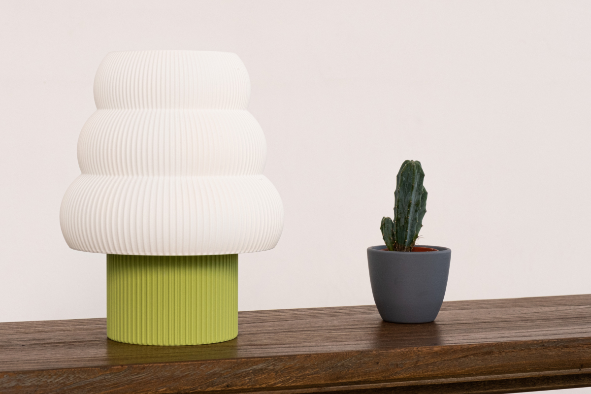 Светильник изготовлен в нашей 3D-лаборатории по дизайну Flowlastic Studio и производится по лицензии бренда KUMO. Основание и плафон отсоединяются и взаимозаменяемы с другими моделями серии.
