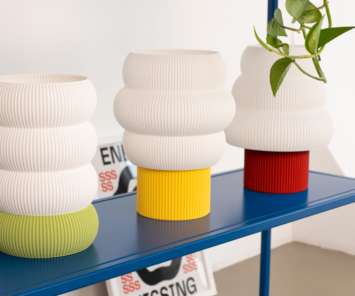 Модульный настольный светильник Tree из биоразлагаемого пластика. Мягкая, округлая форма делает его визуально тёплым и спокойным, а вертикальная текстура добавляет глубину без перегрузки. Светильник не занимает много места и легко вписывается в интерьер — на стеллаж, прикроватную тумбу или рабочий стол.