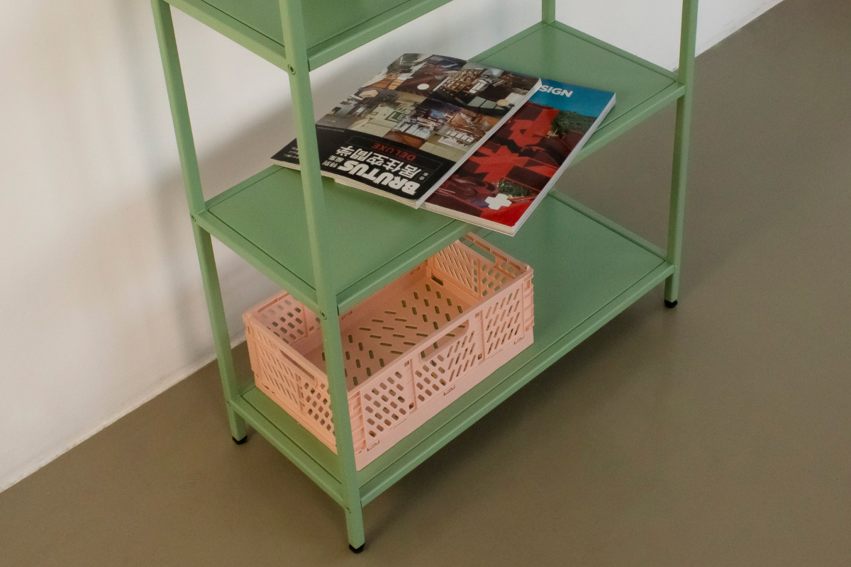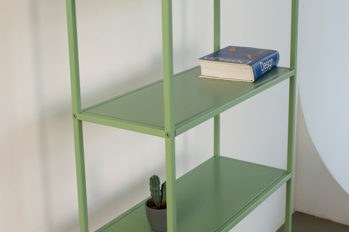 6 полок позволяют удобно разместить книги, предметы декора, растения, посуду или рабочие материалы. Открытая конструкция не создаёт ощущения «стены» и хорошо подходит для небольших помещений, где важно сохранить воздух и свет. Стеллаж легко вписывается в гостиную, кабинет, спальню, студию или общественные пространства — кафе, шоурумы, офисы.